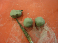 3. Make two of the pieces into spheres by rolling them in your hands. Put the 3rd piece aside for now.